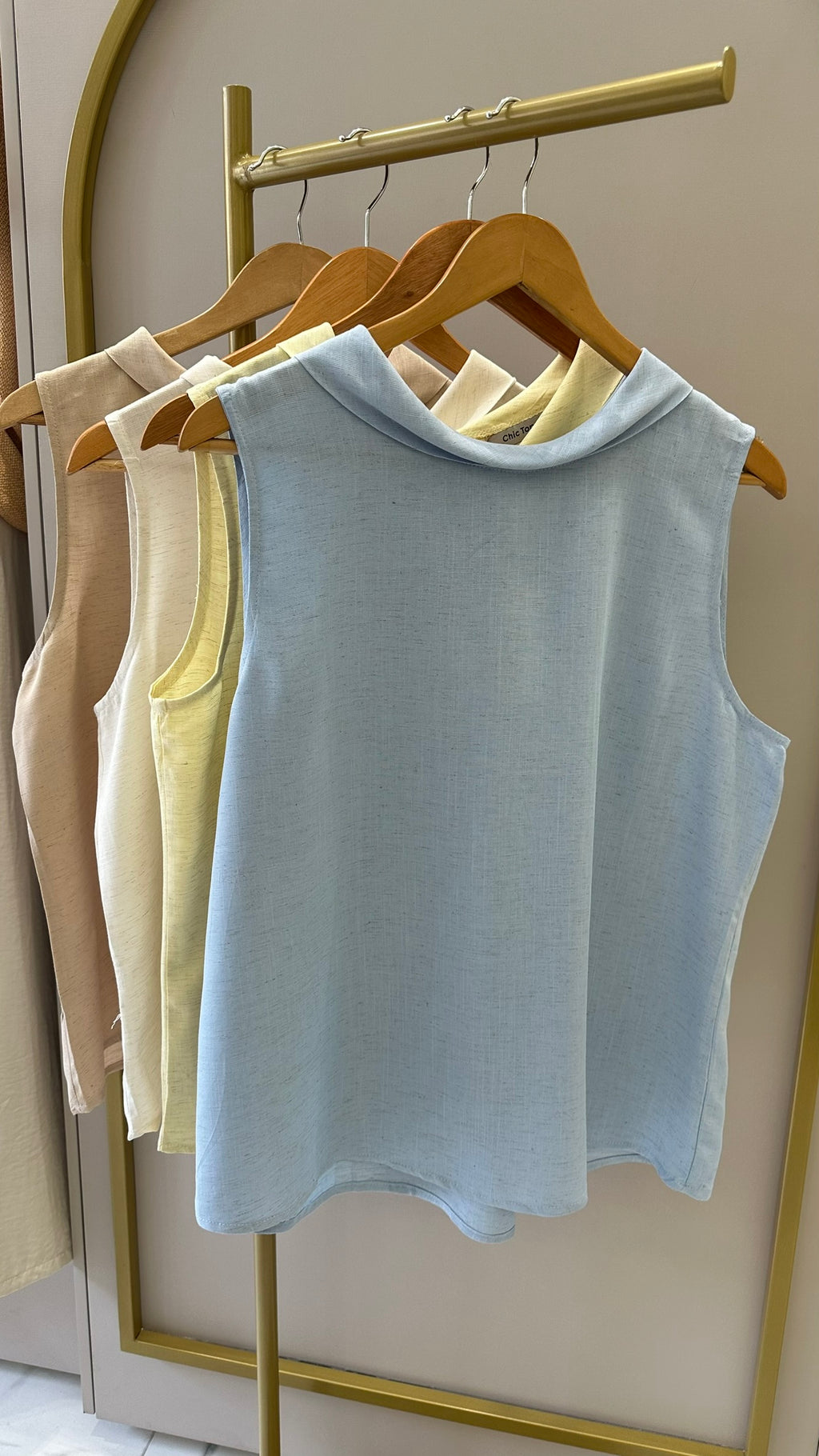 Regata com gola, tecido viscolinho, modelo clássico e atemporal.
